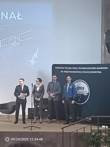 24 września uczennica klasy 4A Maria Lenarcik wraz z panem Dariuszem Maliszewskim uczestniczyli w Uroczystej Gali Konkursów Edukacyjnych Towarzyszących Polskiej Misji Kosmicznej INGIS w Ministerstwie Rozwoju i Technologii w Warszawie.